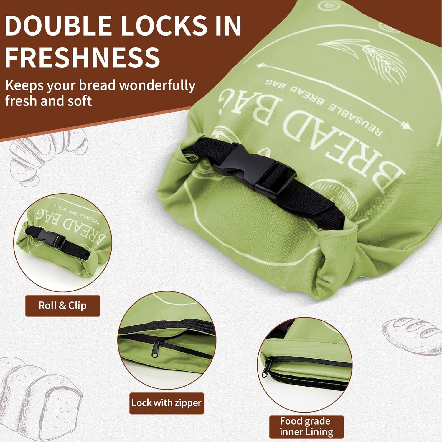 Extended Freshness for Homemade Bread: Our bread bags for homemade bread act as the ultimate bread preservers, equipped with a food-grade TPU lining and a waterproof zipper seal to help them stay fresh for an extended time, while ensuring the freshness and moisture of bread or other foods