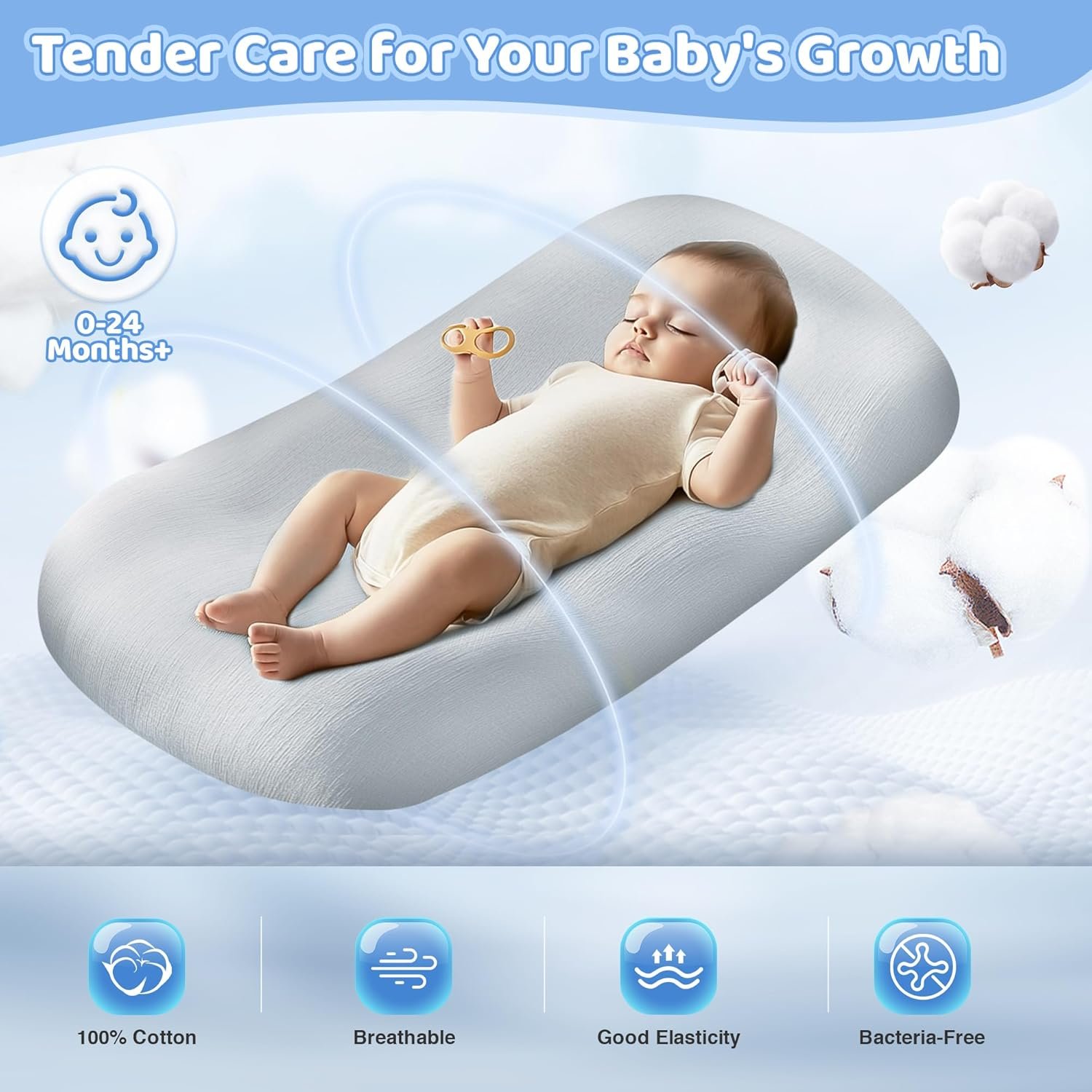 Gentle on Baby’s Sensitive Skin: Crafted from soft, breathable materials, this baby lounger pillow features a pure cotton cover that promotes airflow and prevents overheating. It creates a comfortable resting environment for your baby, so they can stay cozy whether they’re napping at home, relaxing in the living room, or lounging on the go