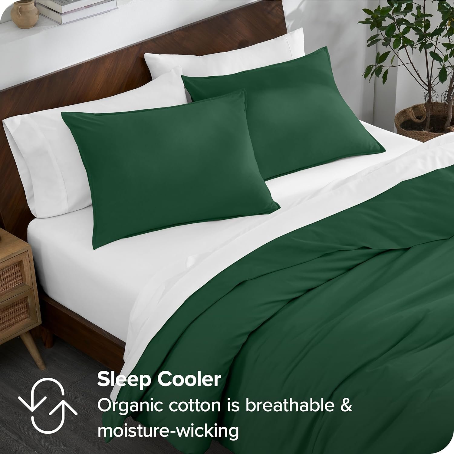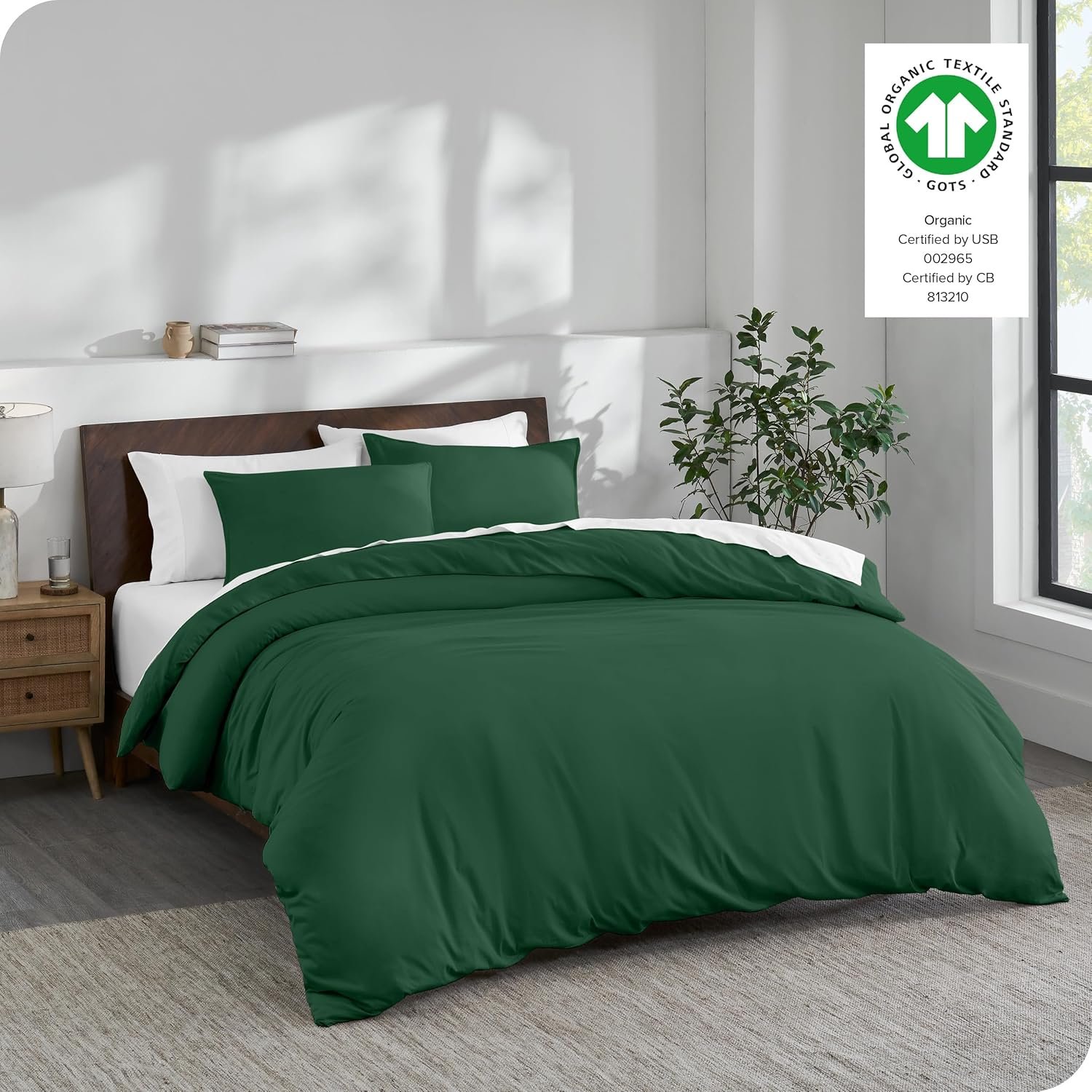 Bare Home 100% Organic Cotton Jersey Duvet Cover Set – Twin/Twin XL Size – Ultra Soft – 100% Cotton – 2pcs – Corner Ties – Button Closure – Bedding Duvet Cover & Pillow Shams (Twin/Twin XL, Forest Green)