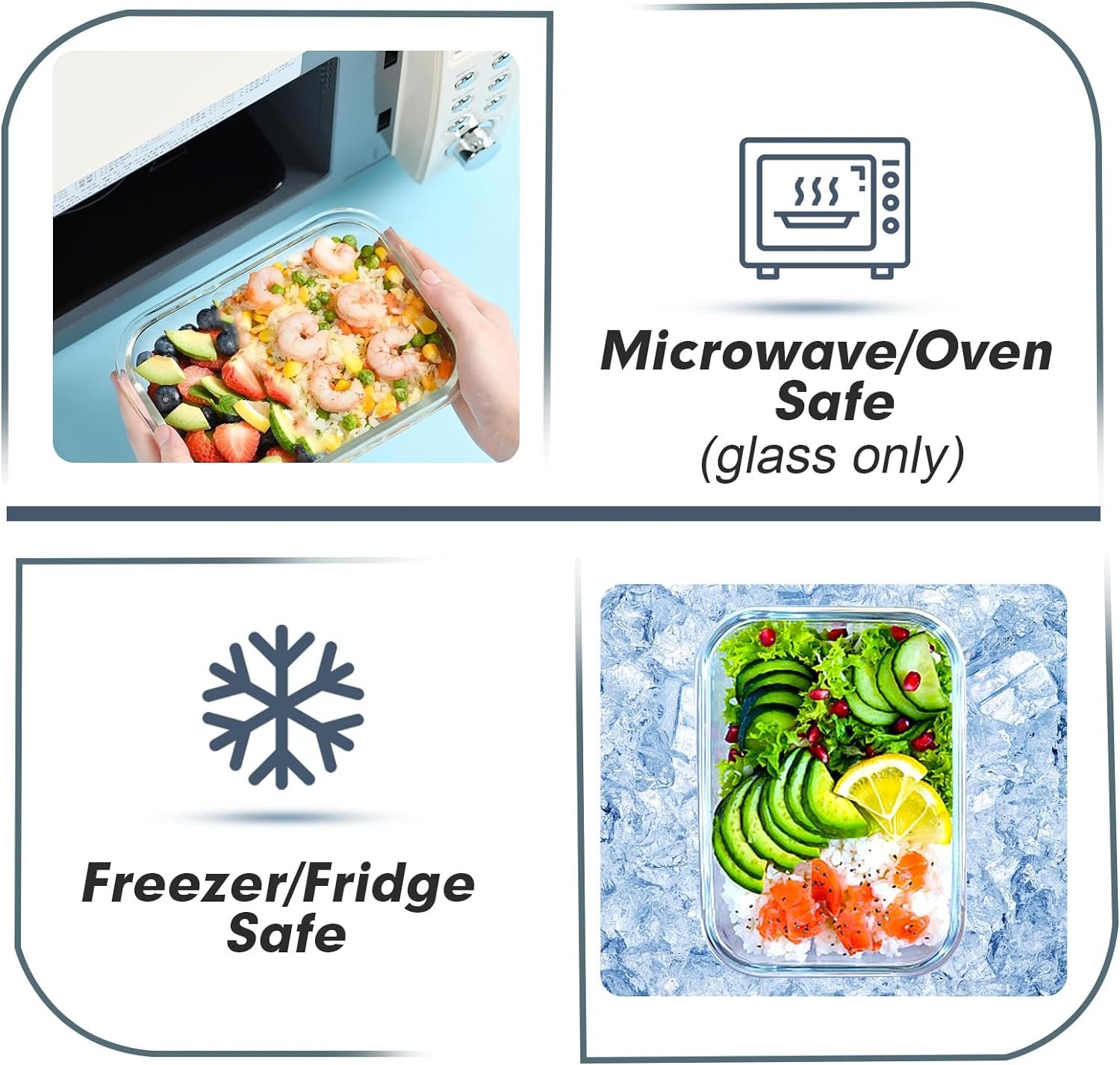 FREEZER, OVEN, MICROWAVE & DISHWASHER SAFE: Our glass containers are designed to be safely used in the freezer, oven, microwave, and dishwasher. You can freeze leftovers or prepped meals, quickly heat up your food in the oven/microwave, and clean up effortlessly in the dishwasher.