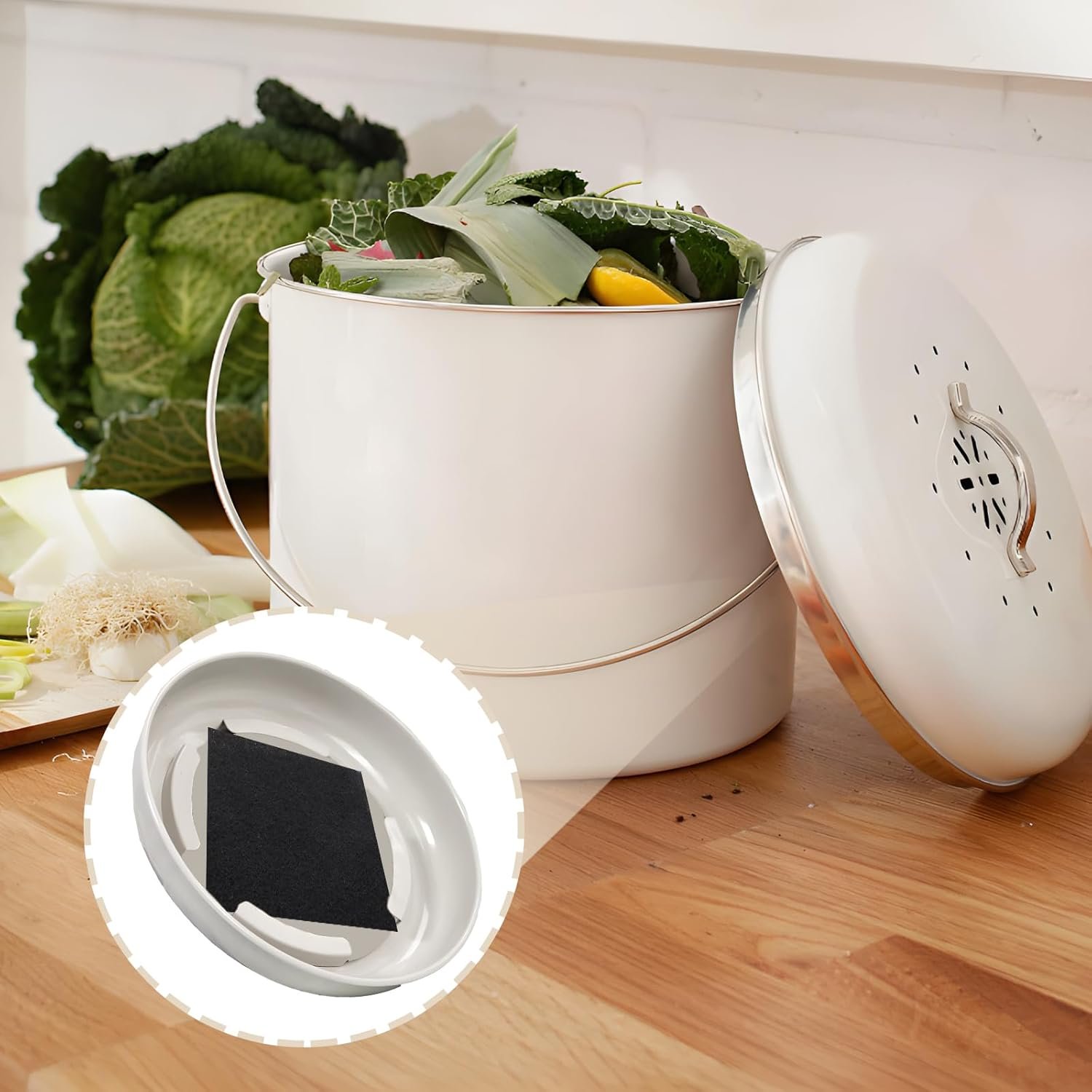 Preferred Material: The charcoal filters for kitchen is made of activated carbon, which can effectively absorb the smells of the compost bin and prevent food smells from escaping from the compost bin