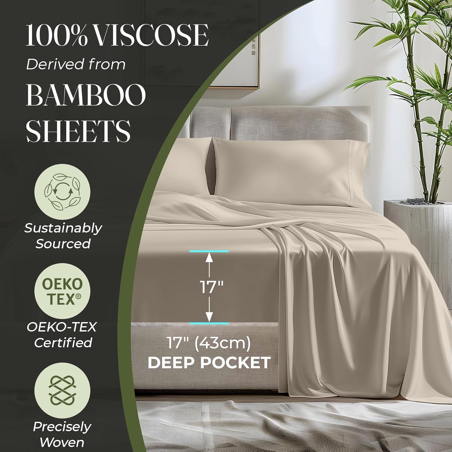 UNMATCHED COMFORT & SOFTNESS: Our unique 100% viscose derived from bamboo sheets king size deliver an unparalleled softness and a smooth, luxurious texture. OEKO-Tex Certified viscose derived from bamboo bed sheets are silky-smooth & naturally hypoallergenic