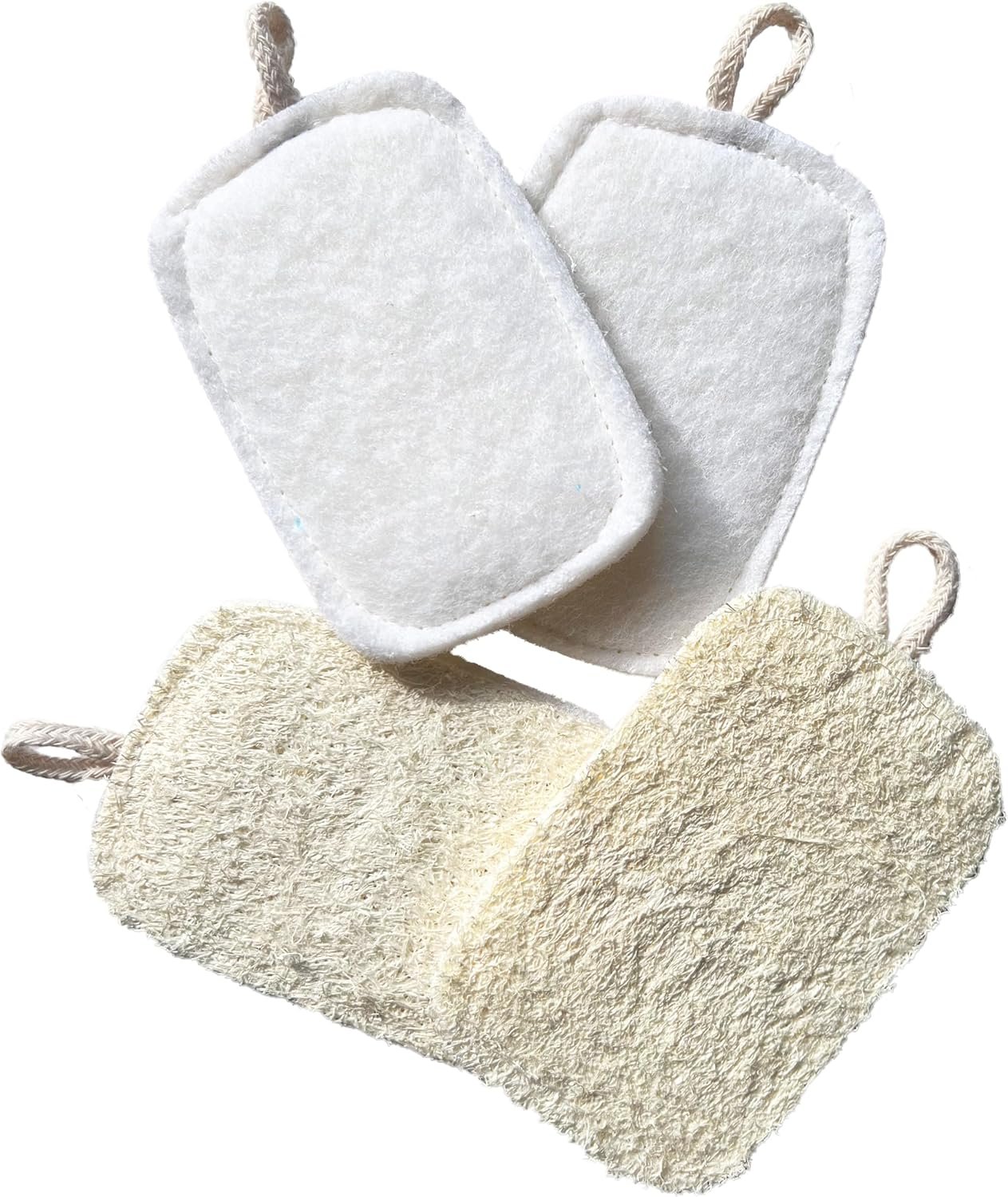 Natural Loofah Kitchen Sponges 4 Pack – Dish Scrubber Brush – Safe for Non Stick Pans Pots Cookware – Double Sided Available – Durable Sponge for Dishes, Coated Cookwares, Sink, Countertops