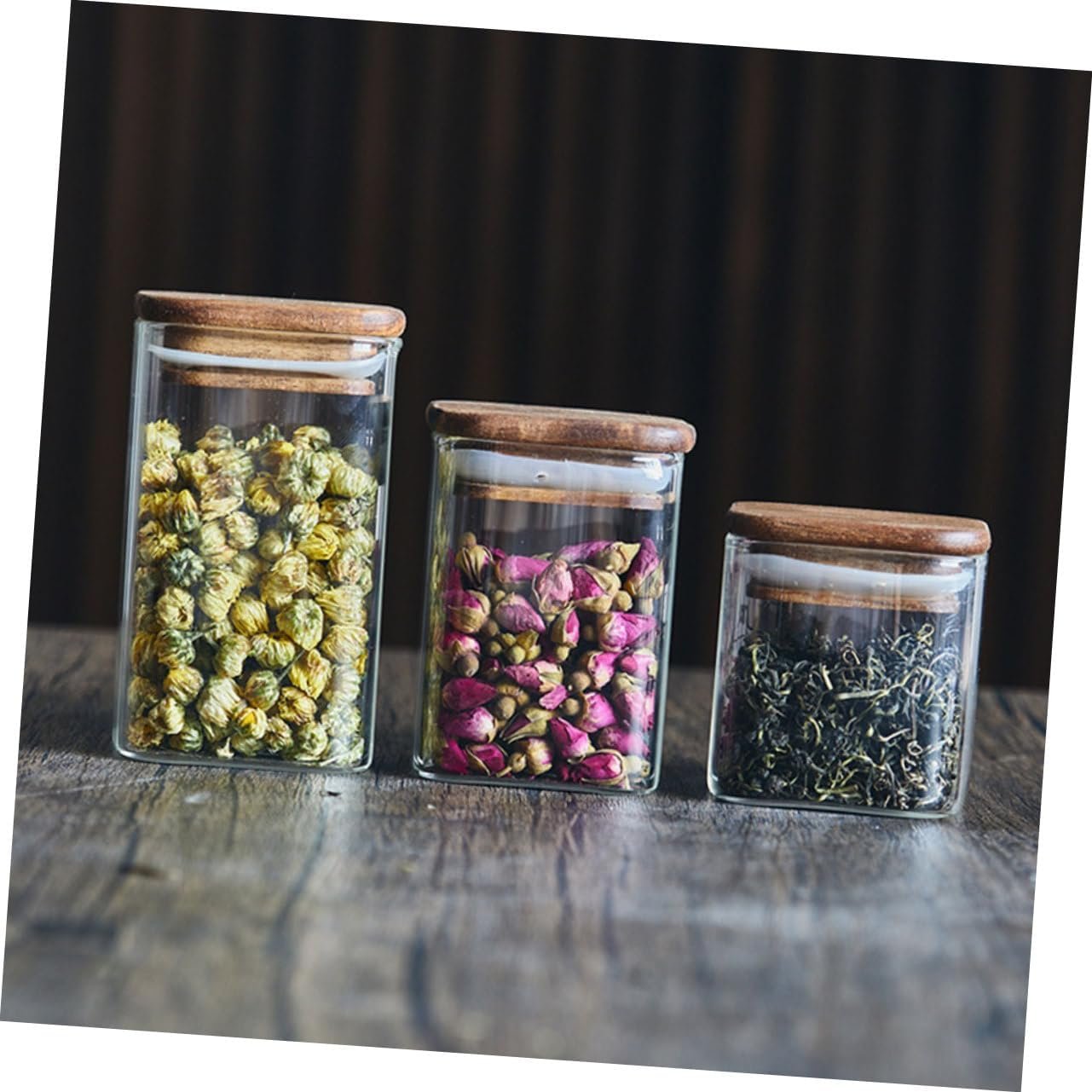 3pcs Airtight Glass Jars Dispenser Kitchen Storage Jars Coffee Jar Syrup Pantry Containers Jam Jars Overnight Oats Jar Nuts Bins Gooseneck Coffee Pod Holder Food Container Wood
