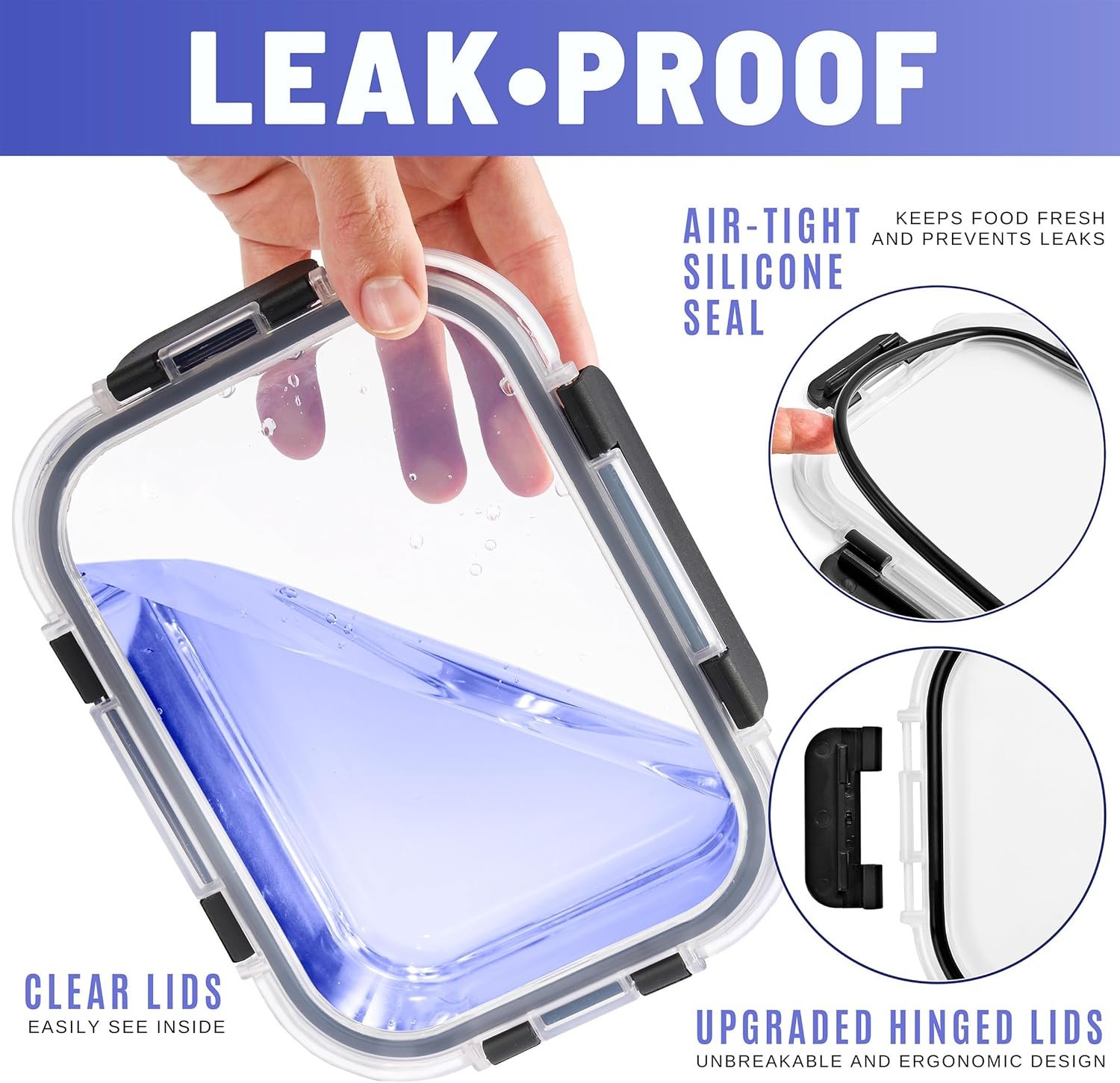 Glass Meal Prep Containers with Lids: These airtight food storage containers are ideal for storing prepped meals, leftovers, chopped fruits and veggies, snacks, and more making kitchen storage convenient. Use as meal prep lunch box, salad jars with lids, meal prep glass containers with lids, baby food storage containers, pet food storage containers, freezer containers for food storage, meal prep containers, glass collapsible food storage containers, or oven safe glass meal prep containers.