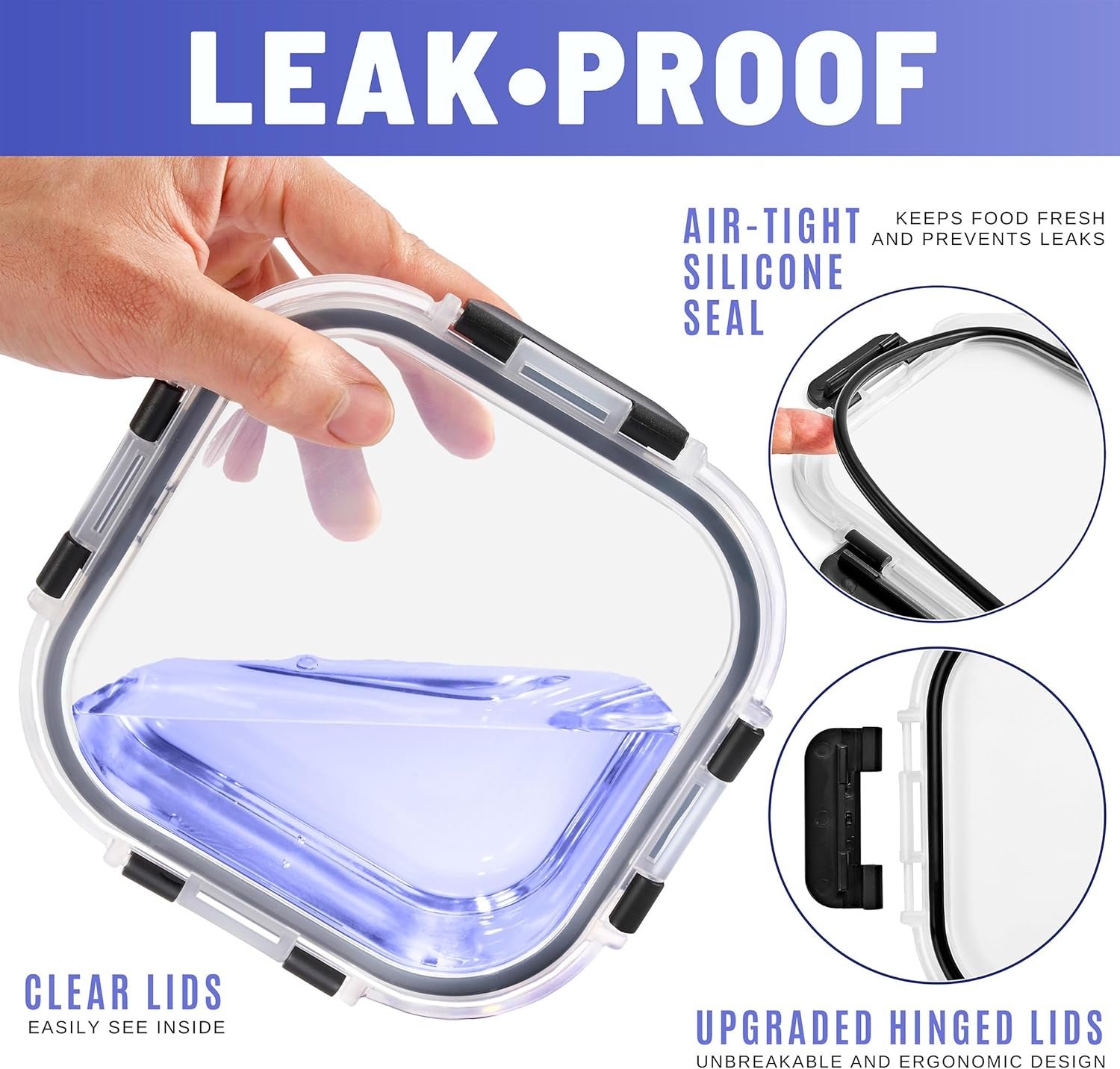 Keeps Food Fresh and Secure: Each storage container for food features a four-sided locking lid with an airtight silicone seal to preserve freshness and prevent leaks. Glass containers for food storage stack easily in the refrigerator, freezer, or cabinet.
