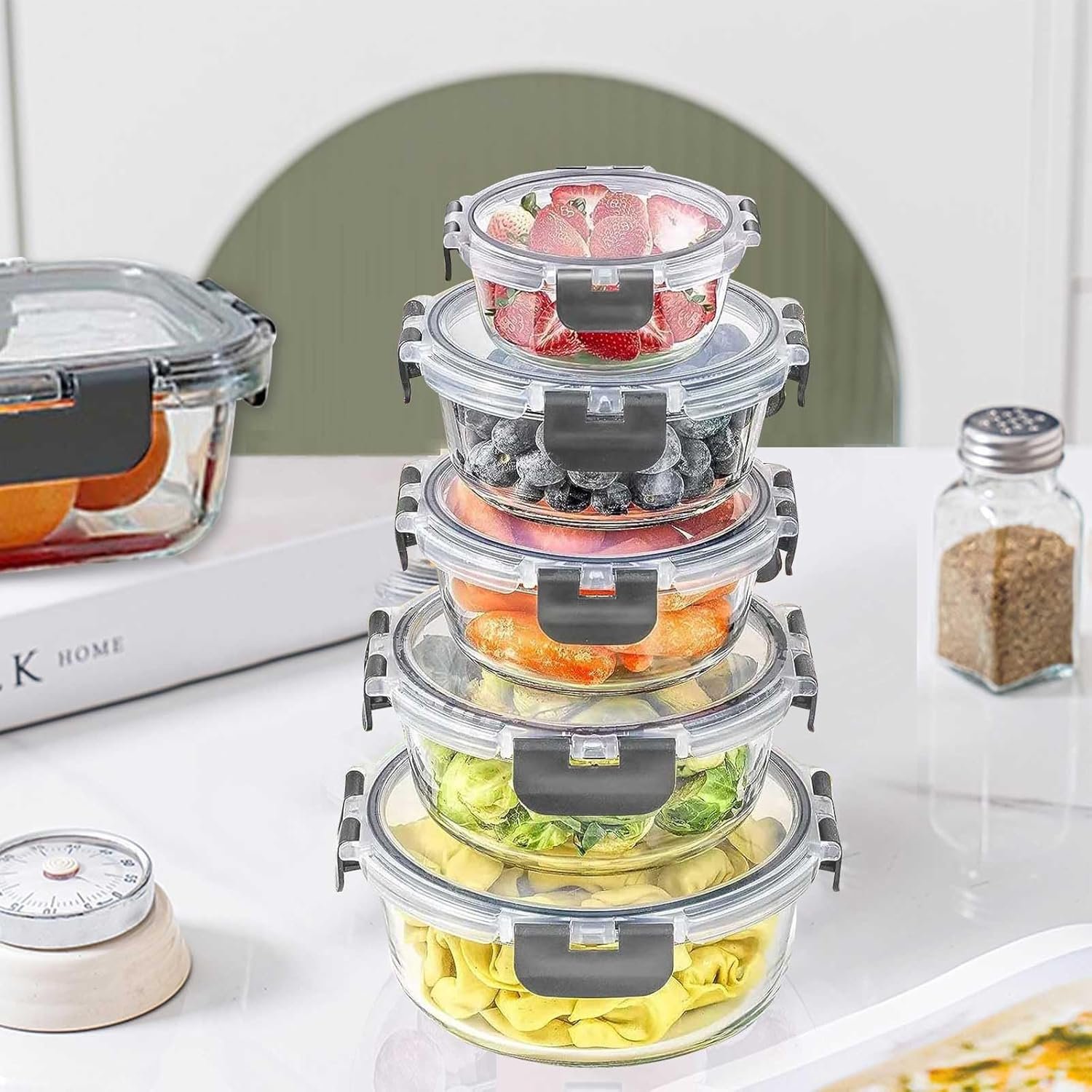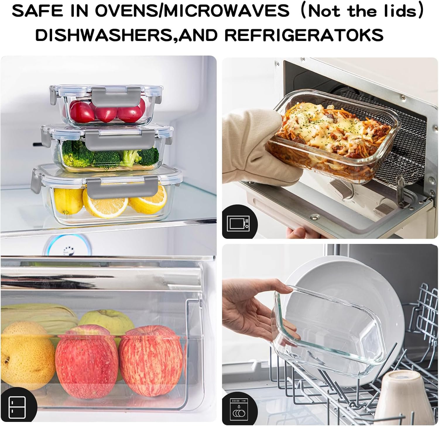 【Great Sealing】 Our glass containers with lids feature a hinge-lock construction (each plastic lid has a silicone seal and four smart latches for easy removal) that completely isolates the container from air circulation and slows down the oxidization process of food. These airtight food containers with lids can help keep your food fresher and more flavorful for a longer period of time, providing you with safer eating conditions.