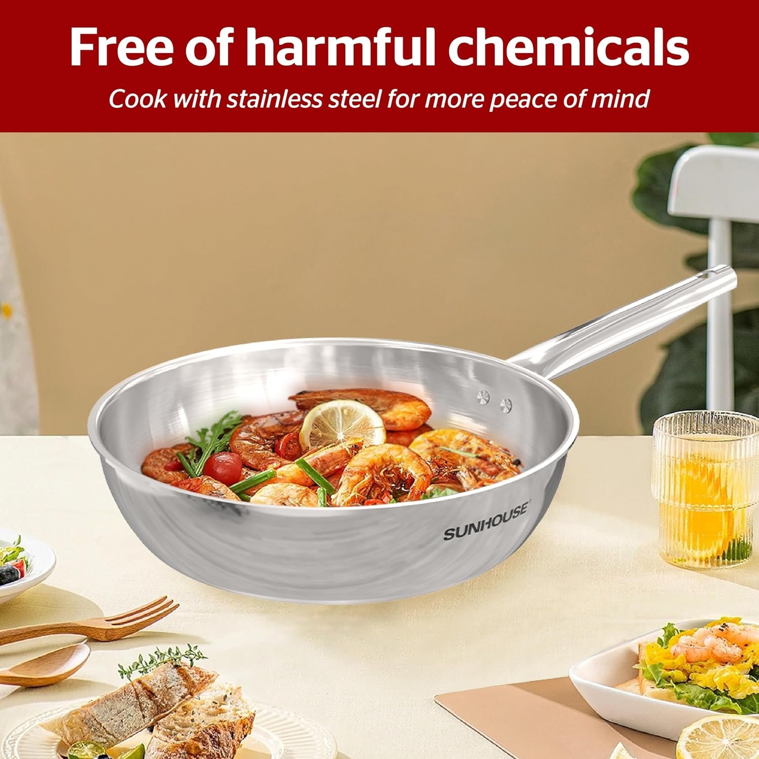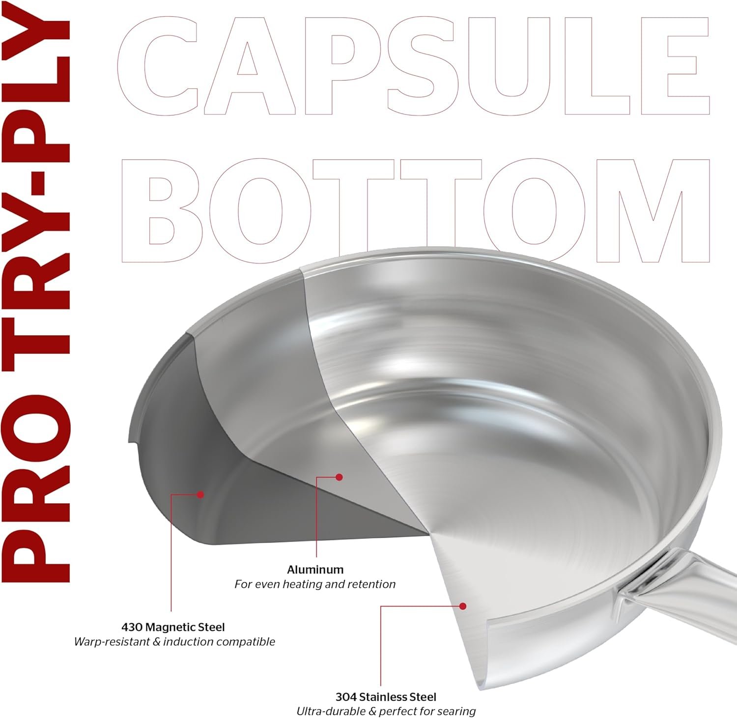 TRI-PLY STAINLESS STEEL: Tri-Ply Stainless Steel Pan combines ergonomic kitchenware design and superior features for better cooking performance. Stainless steel surface doesn’t react with food or alter flavors