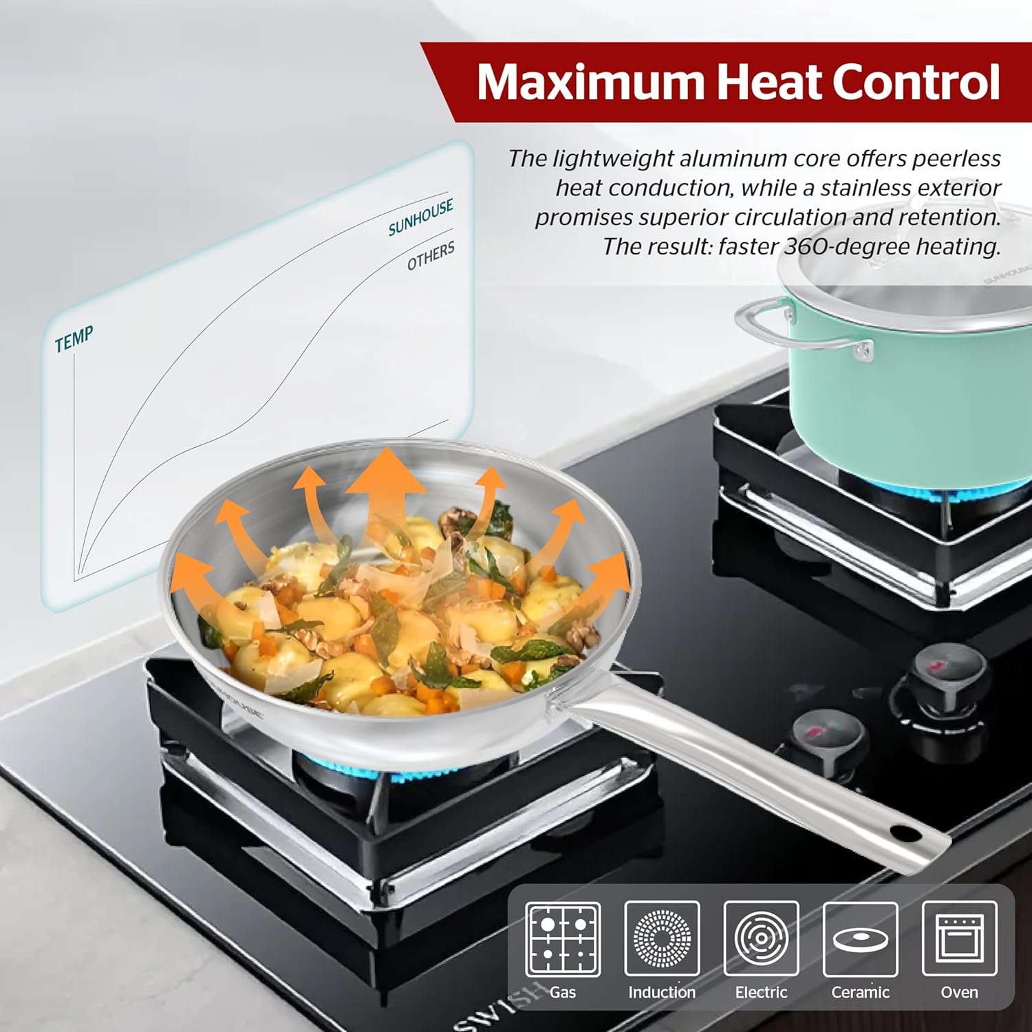 SUPERIOR HEAT DISTRIBUTION: The 2mm-thick stainless steel base ensures even heat distribution, preventing hot spots and ensuring consistent cooking results.