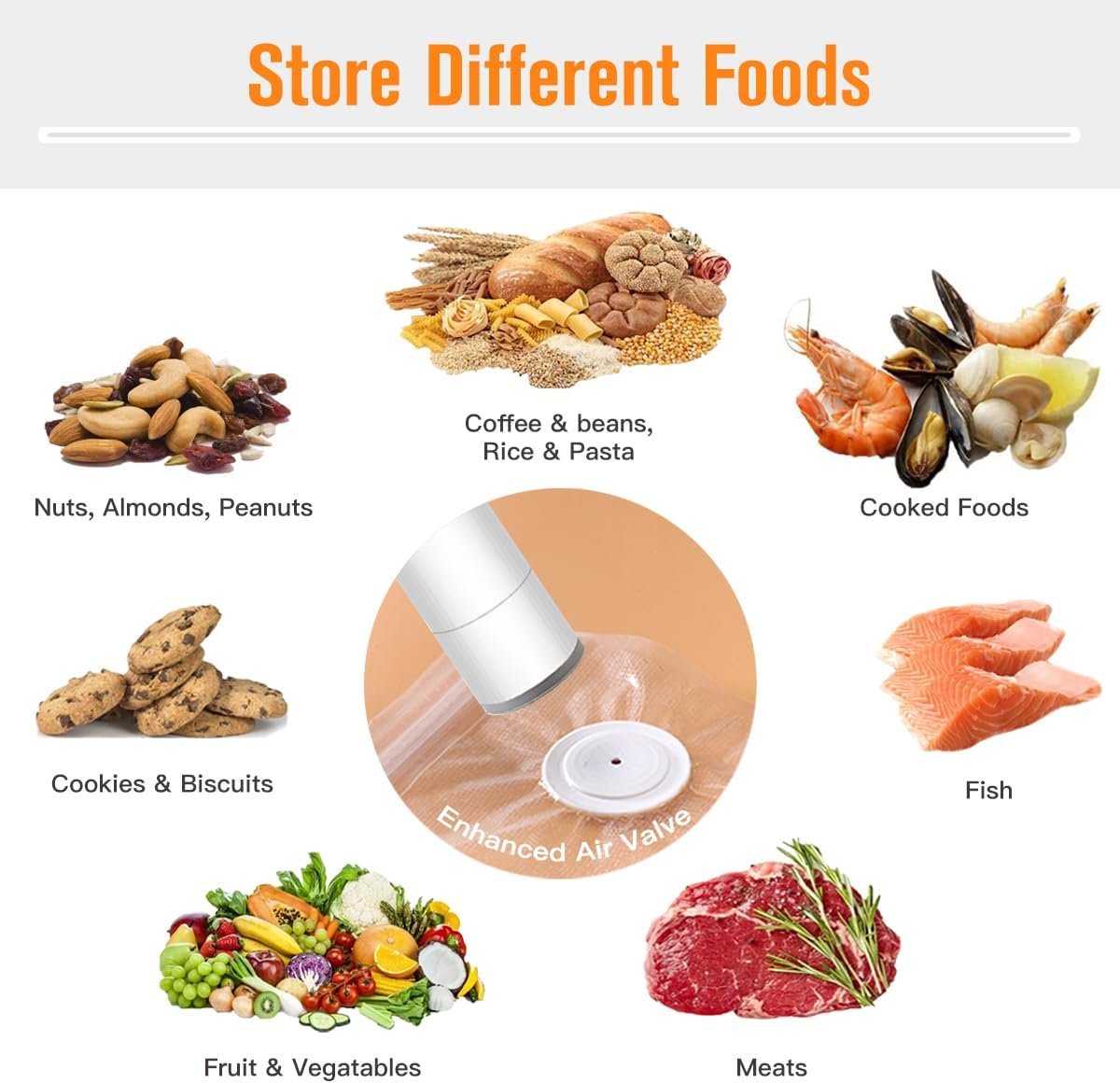 Vacuum Seal Bags for Food, Reusable Freezer Vacuum Storage Bags, Vacuum Food Saver Bags for Vacuum Sealer Hand held | Enhanced Air Valve, Easy Vacuum, Less Waste, Keep Fresh (20pcs pack)