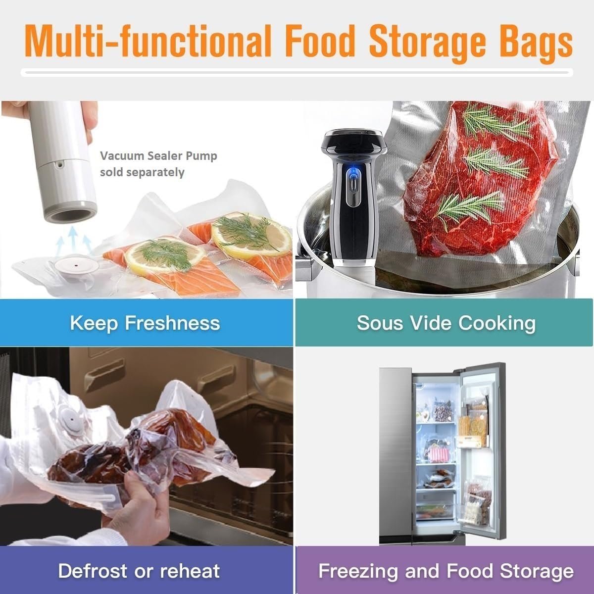 ✔️【VACUUM FREEZER BAGS PACK】30*34cm (4pcs) + 26*34cm (4pcs) + 22*34cm (4pcs) + 26*28cm (4pcs) + 21*22cm (4pcs) + Sealing Clip. Enjoy the reusable food storage bags vacuum for food saving and storage, cooking and seafood boiling, microware reheating and defrosting.